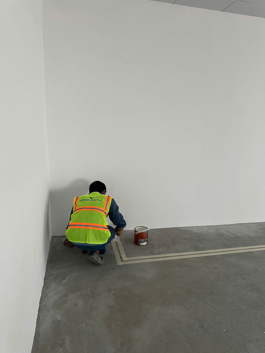 - Tiến hành trám trát mặt sàn cho bằng với cost thô của sàn để bàn giao cho các bên thi công hạng mục tiếp theo.